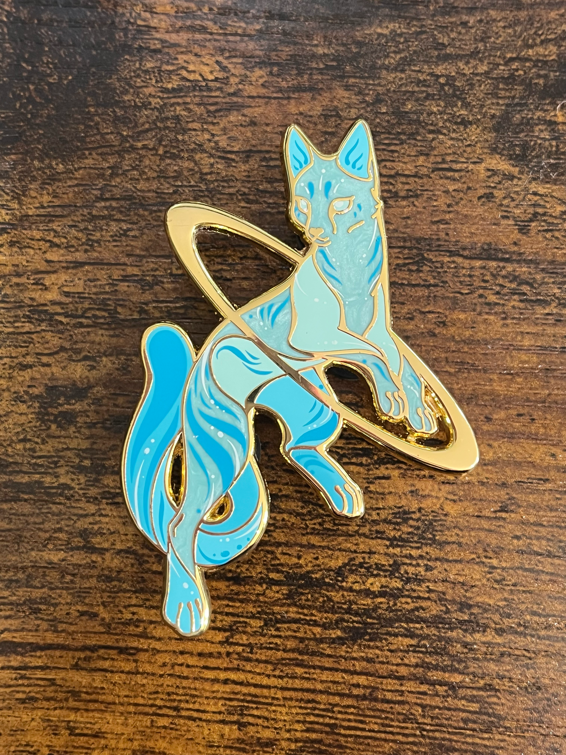 A unique sample of the Uranus pin, accidentally made with Gold metal finish instead of silver. Only two were made.